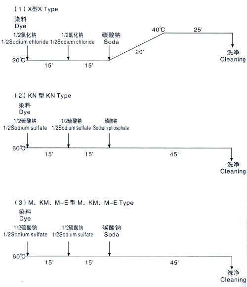 | M、KM、M-E型 | 硫酸钠用量(g/l) | 50 | 60 | 60 |